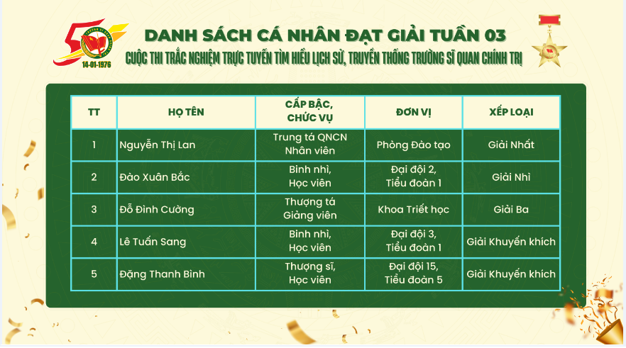 danh sách cá nhân đoạt giải tuần 3